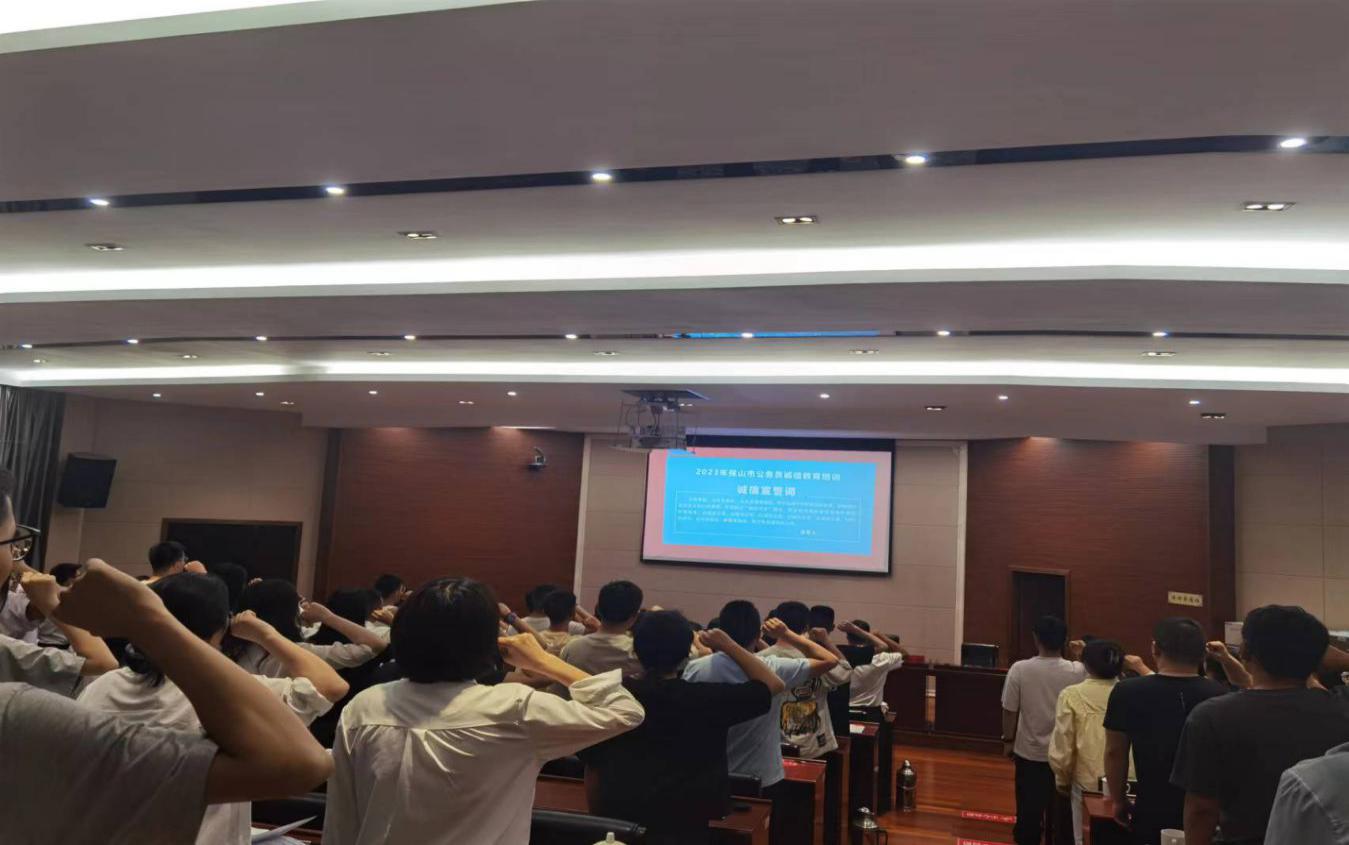 通过培训学习,新录用公务员强化了诚信政策学习,掌握了诚信知识要点,树立了诚信意识和公仆意识。培训课上,全体参训学员进行了公务员诚信宣誓,纷纷表示要争做诚信建设的示范者、守信履约的践行者、政务诚信的推动者。